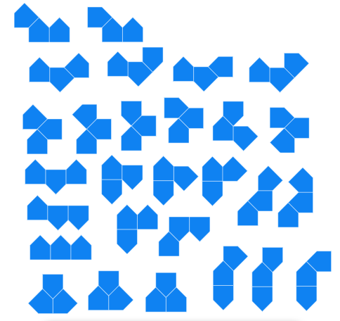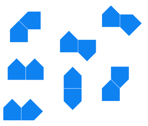 Polytrites are polyforms made of Trites. Trites are 90/90/135/90 pentagons. Trite comes from 'tri' and 'rite', a misspelling of 'right'. Literally means "three right" because it has three right angles. (So technically Trite can refer to any pentagon with three right angles, which there are infinitely many of. This is the one and only symmetric Trite.) Misspelled it 'rite' because Trite looks better than Tright.